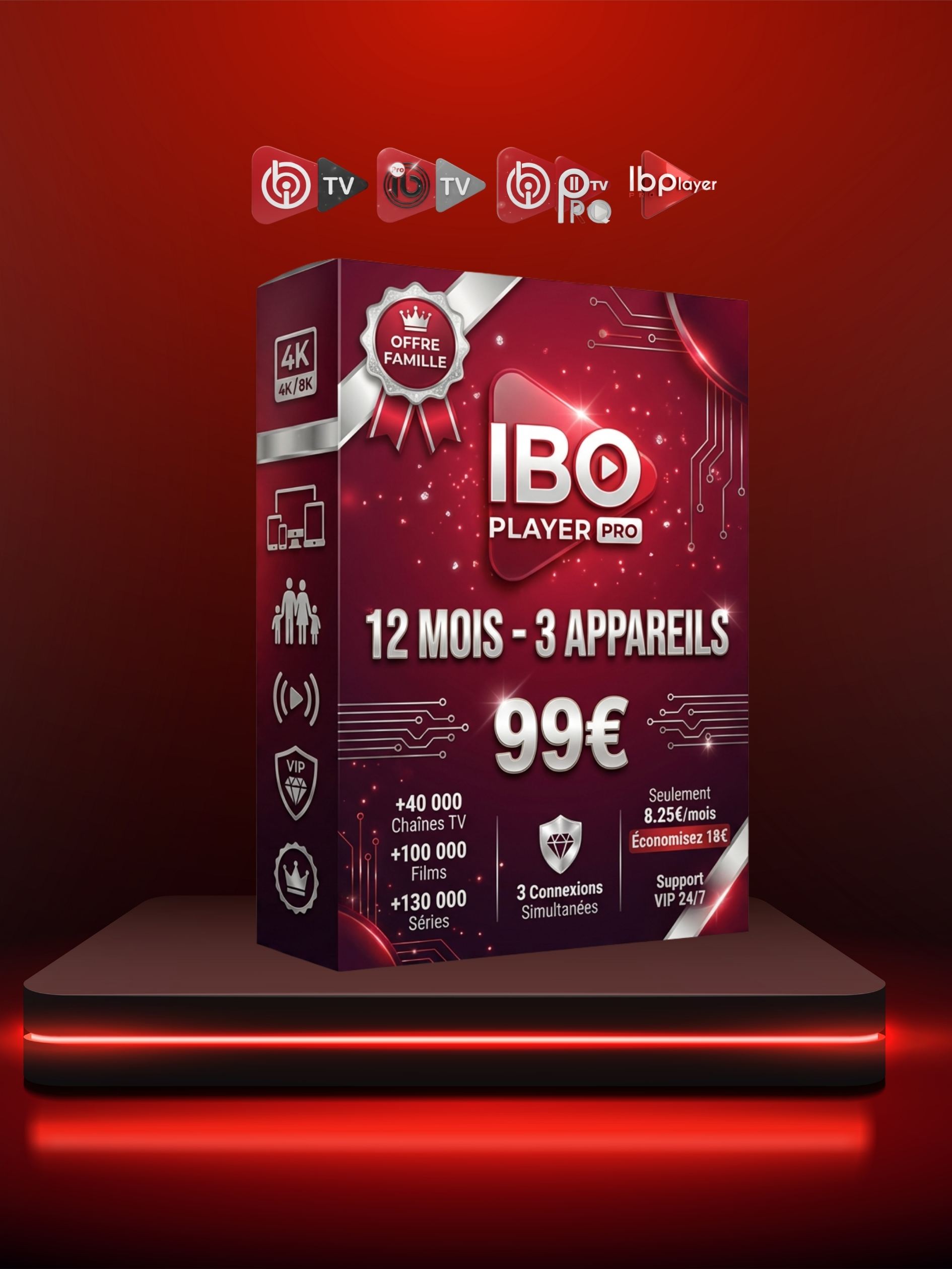 Commandez maintenant votre abonnement IPTV IBO Player Pro 3 appareils et offrez à toute votre famille l’accès au meilleur du divertissement mondial. Satisfaction garantie avec des milliers de clients satisfaits dans toute la France.